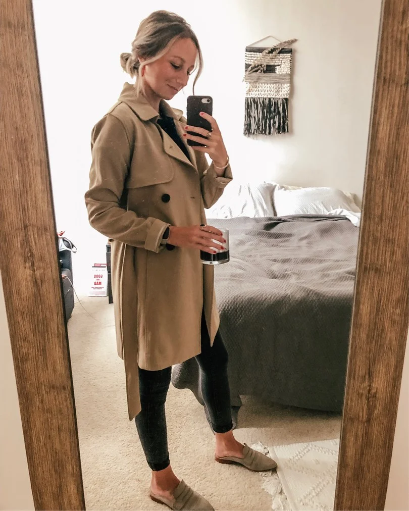 Ingredients: The fabric is a thicker-quality material but breathable. The particular one I own is not water resistant, I wouldn’t recommend doubling as a rain coat. I love the panel details on the front and back for a more textured look.